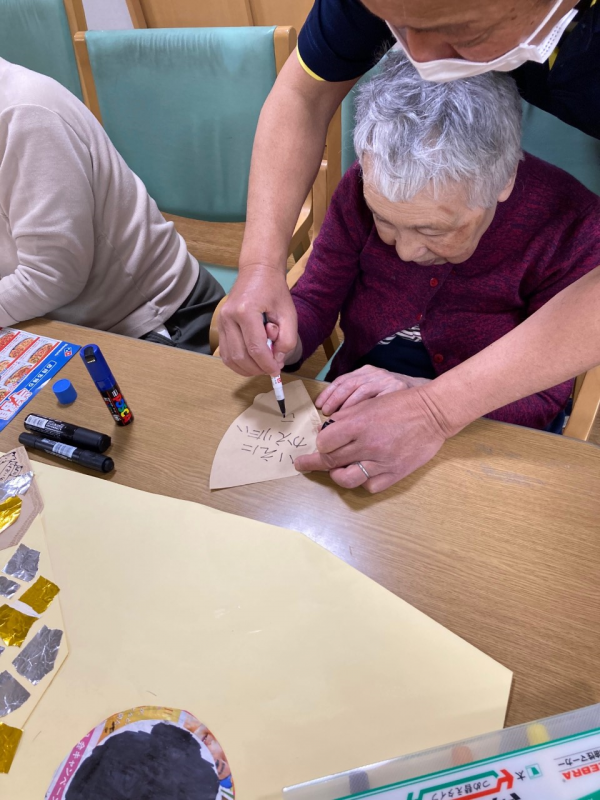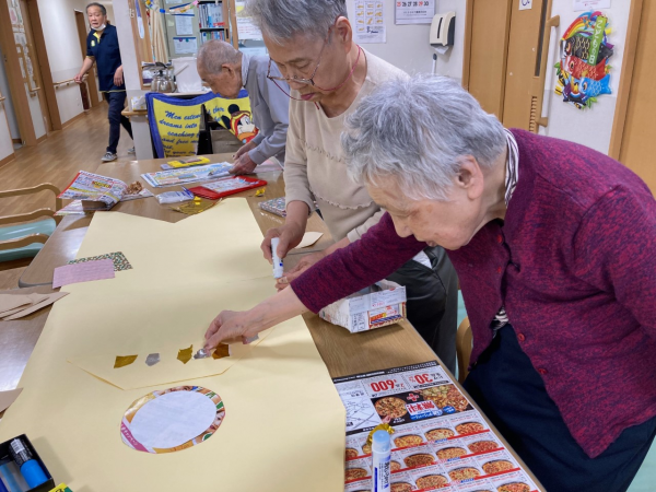 実際の製作現場では、おおそうか!そうか!と笑顔で見守って下さったAさん、積極的に参加していただいたIさん、そしてチラチラと気にしていただいたはにかみ屋のKさん、と男性のみなさんも、メンバーの一員として製作にたずさわっていただきました。