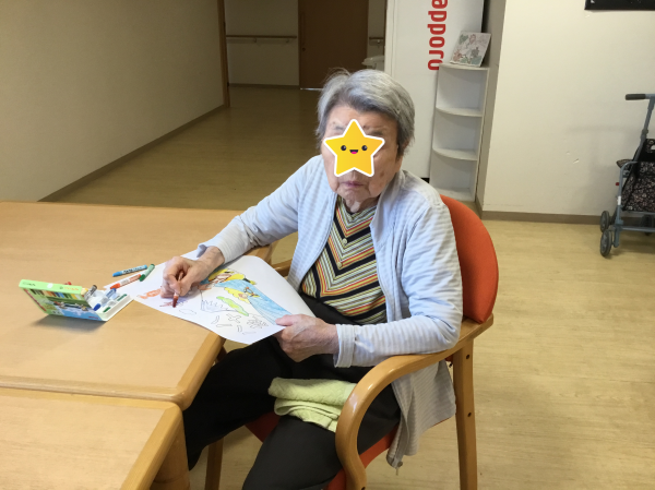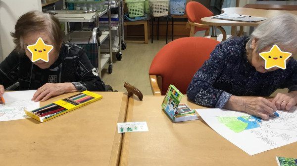 塗り絵を行ったので、その際の様子をお伝えさせていただきたいと思います。