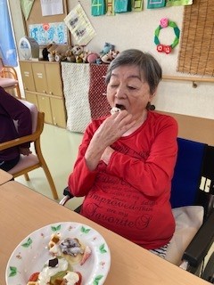 フロアの入居者様にお祝いしてもらい
