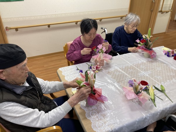生け花を今回行いそれぞれ味のある作品が出来上がりました!