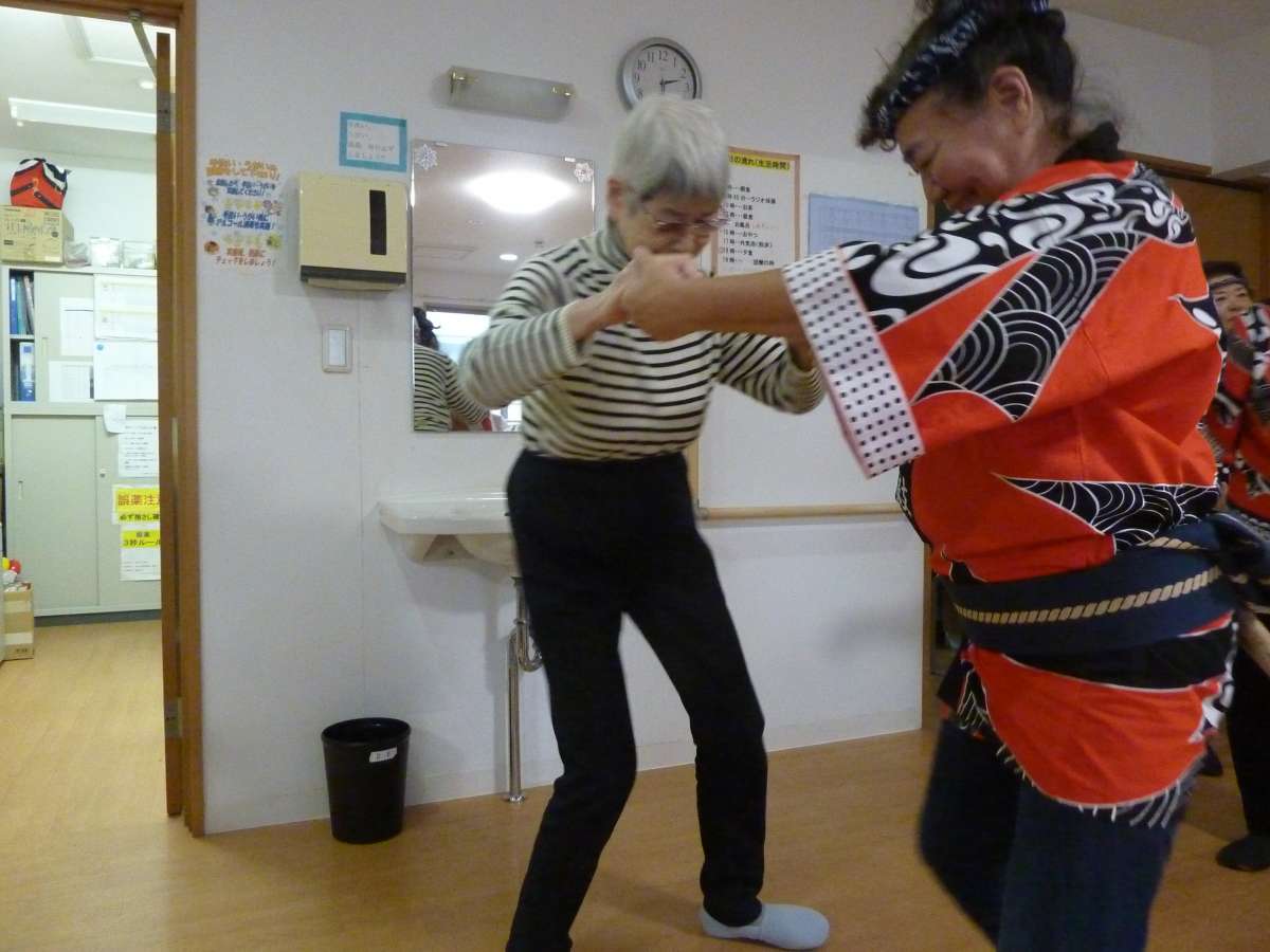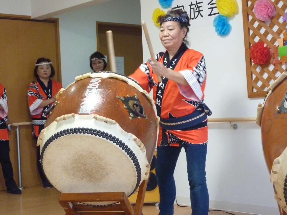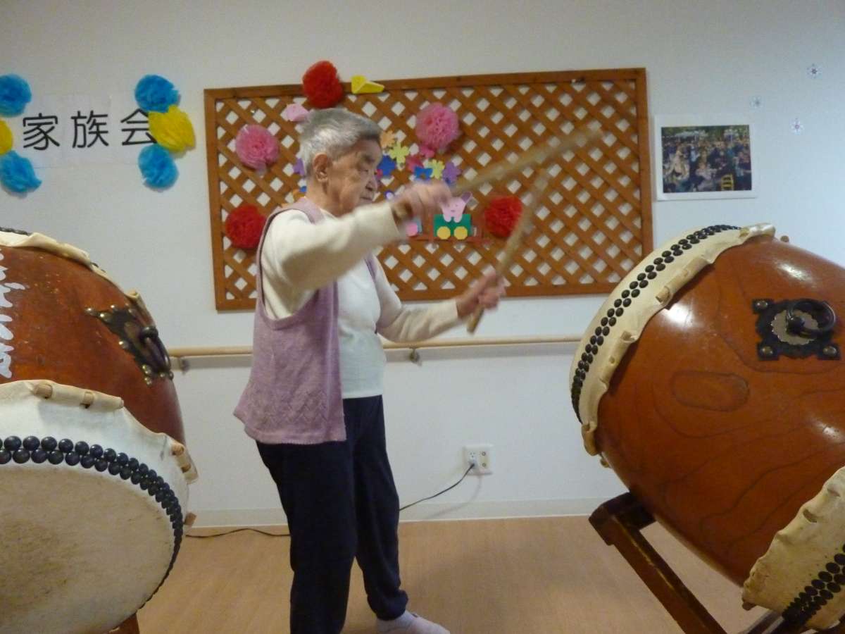 ご利用者の皆様も慣れているのか、太鼓をたたいたり、一緒に踊ったり、大いに盛り上がりました!!