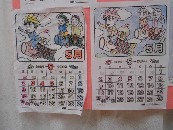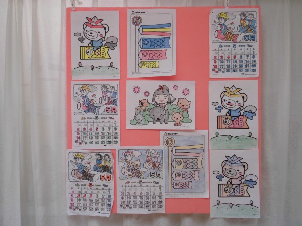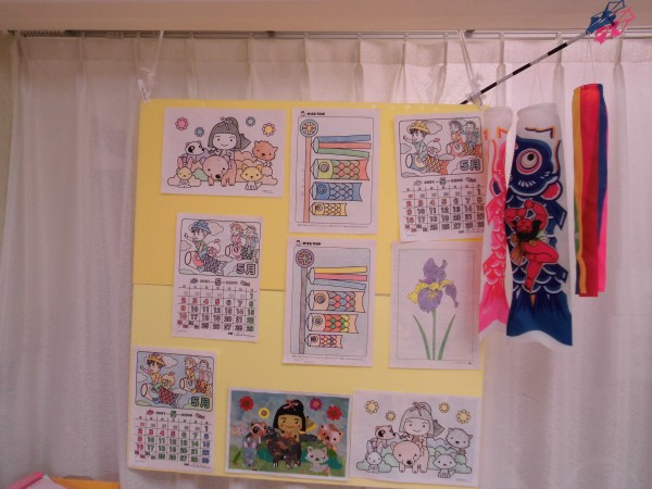 本日は、本館で貼りだしている塗り絵の5月編です!