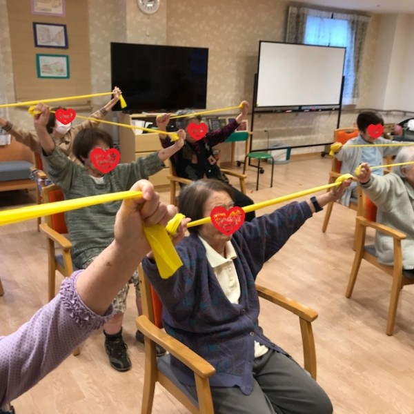 アミカの郷成増でも、セラバンドを使った運動を1年ほど前から継続的に行っています。