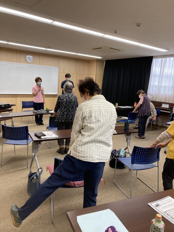 続きまして、理学療法士の指導の下、自宅でもできる体操を行っていきました。