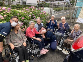 あじさいをバックに記念撮影した時のご様子です。