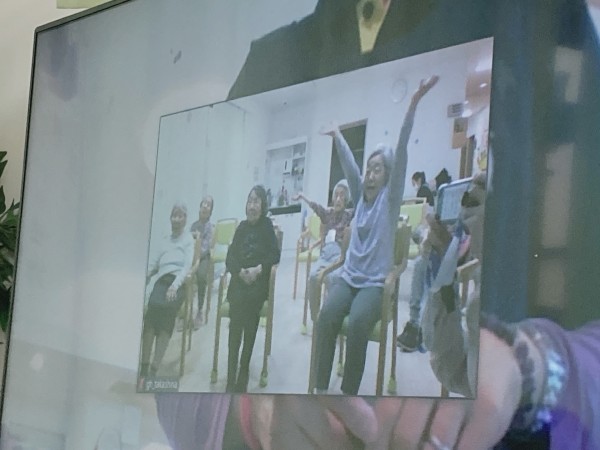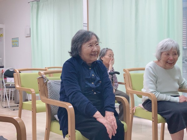 リモートに繋いでいるところを覧になるご入居者様たち(^^♪