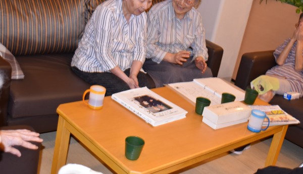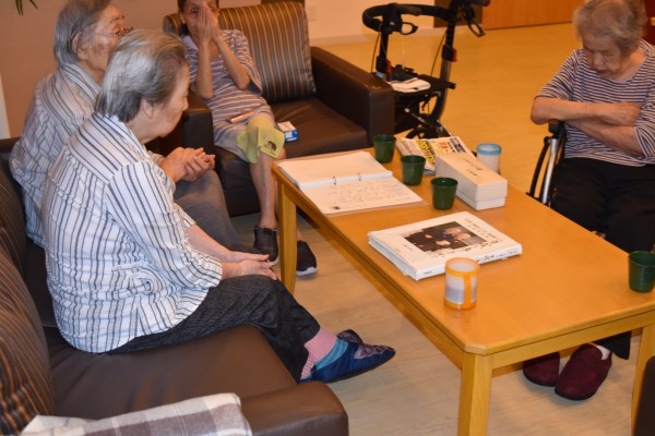 「アミカの郷ちとせ」事務所にいますと、1階リビングから歌声が聞こえてきました♪