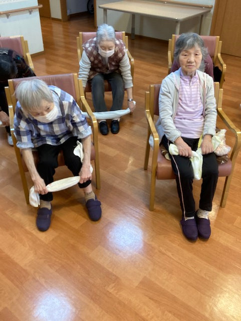 いつものリズム体操やあんしんヨガとはまた違った運動に、