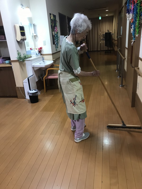 こちらの入居者様は綺麗好きな方で進んでフロア掃除等を行ってくださったり