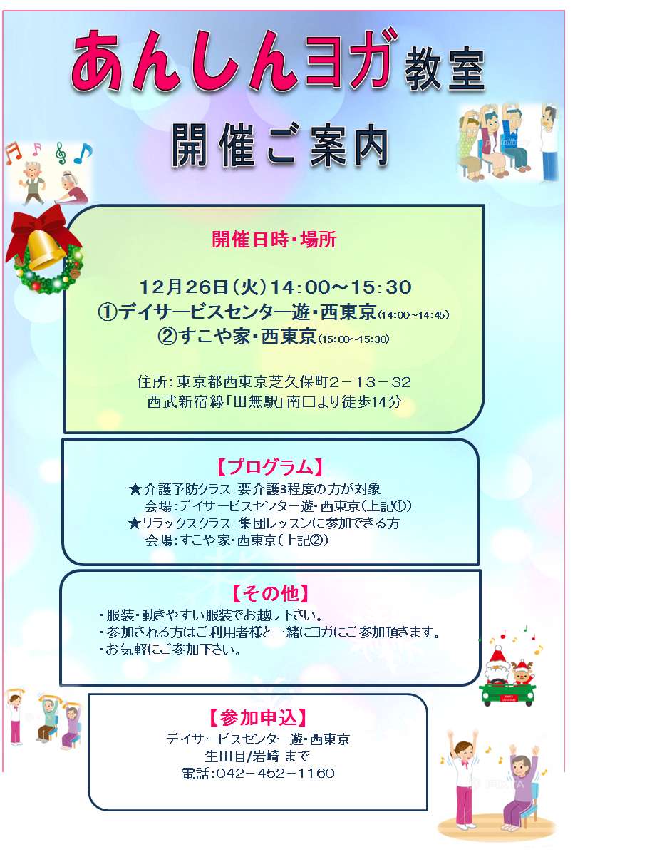 来る12月26日(火)に当社オリジナルの『あんしんヨガ教室』を開催します。
