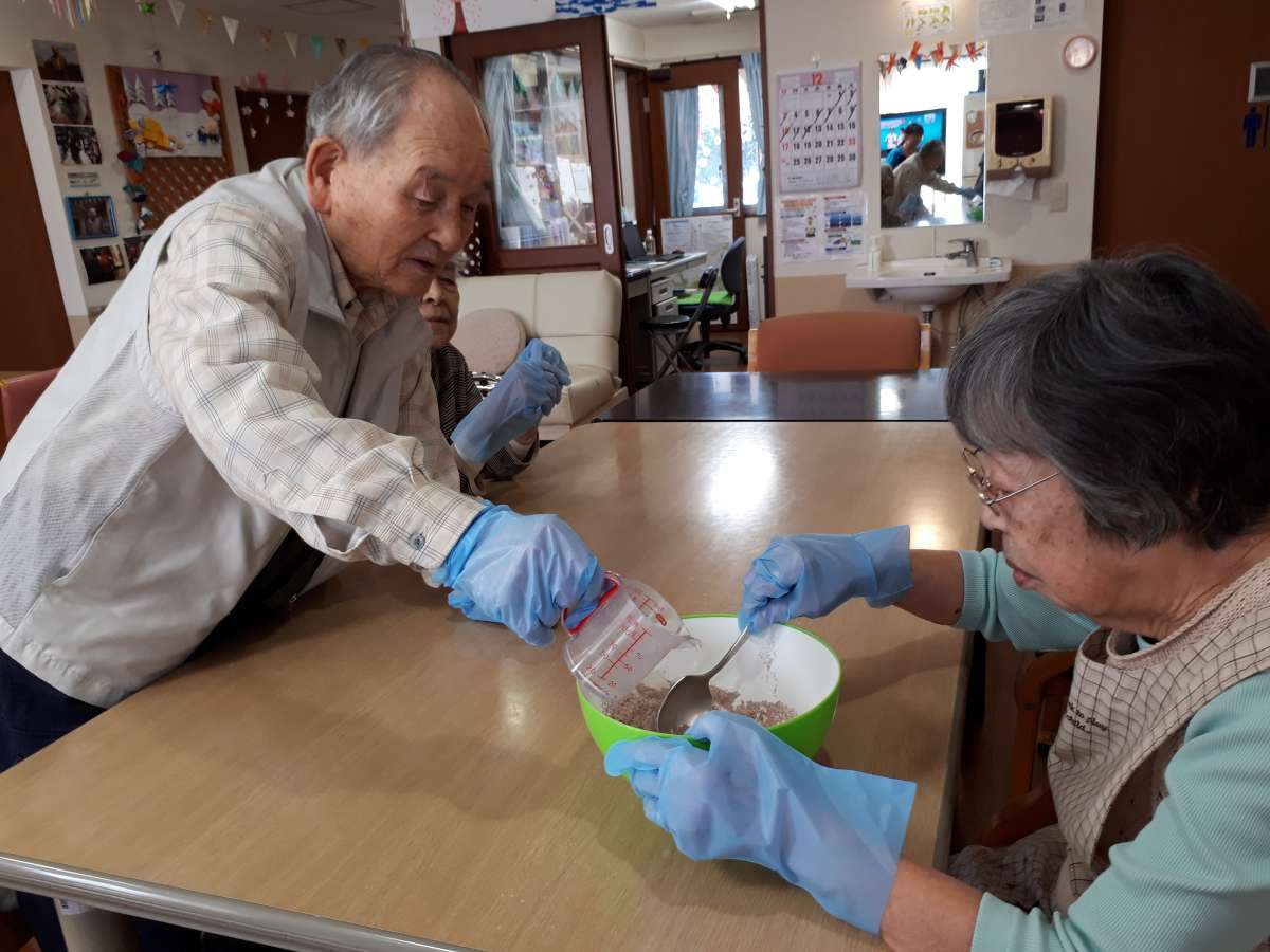 その時のレクリエーションで皆様とおやつを作りをした時の様子です\(^o^)/