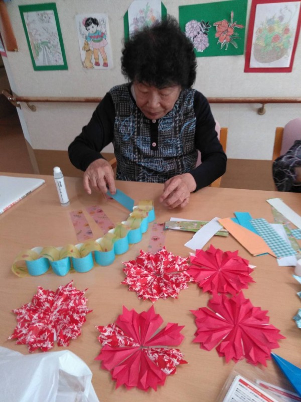 今日は、4階で行われていた壁飾りづくりを