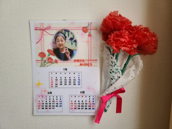 写真入りのカレンダーと手作りのカーネーションの花束をプレゼントしました( *´艸`)♪