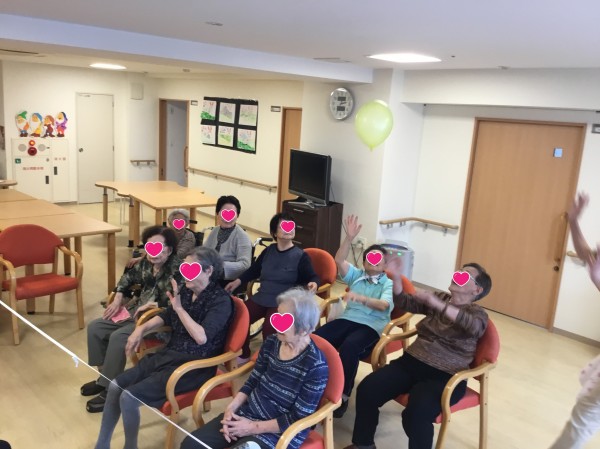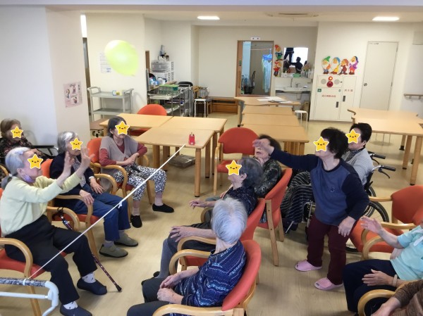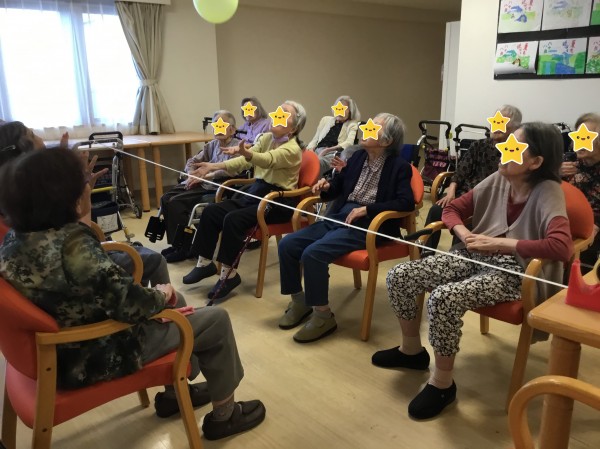 先日レクリエーションで、風船バレーを行ったので、