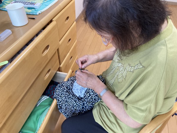 「家にいた時はよくやったのよ~。」と嬉しそうにチクチク…