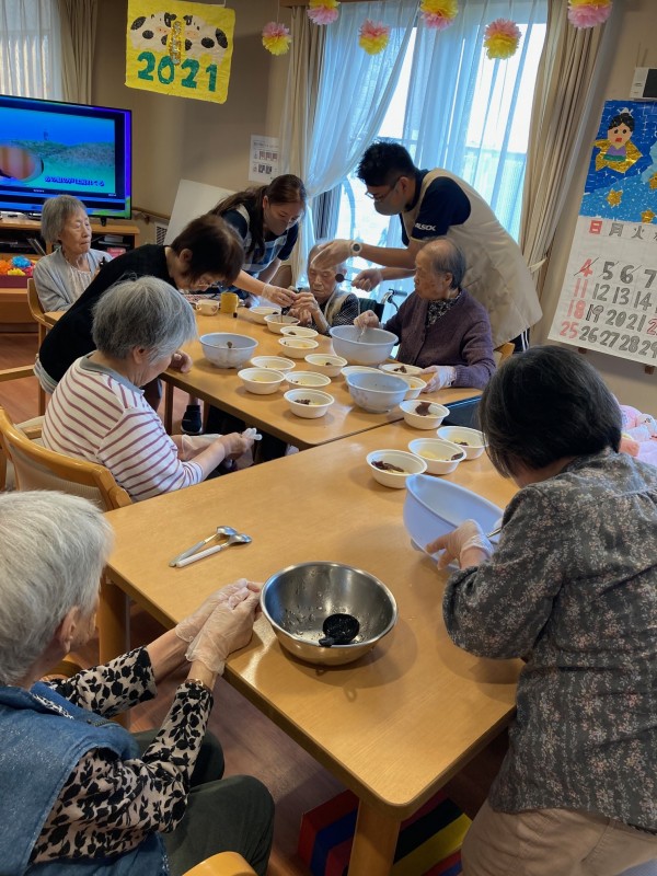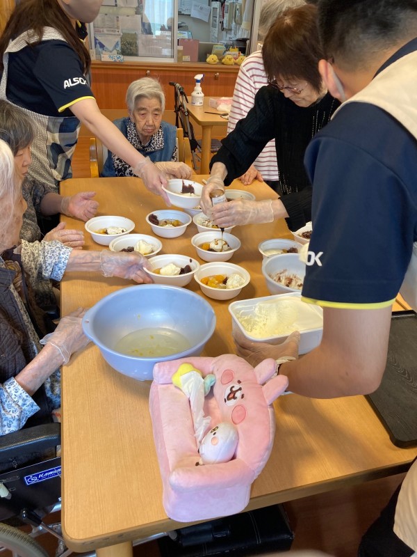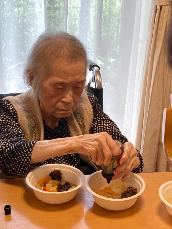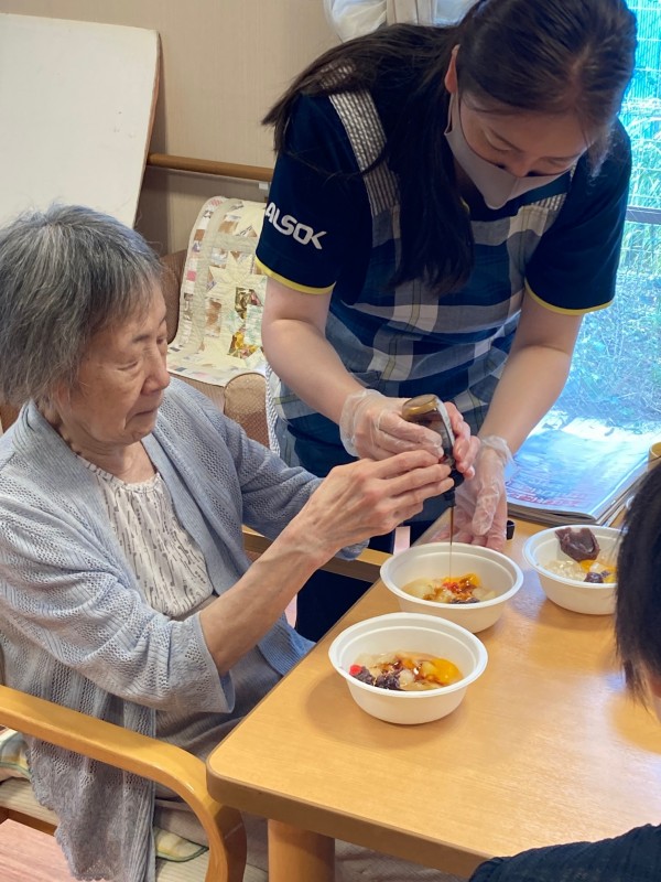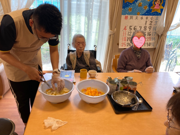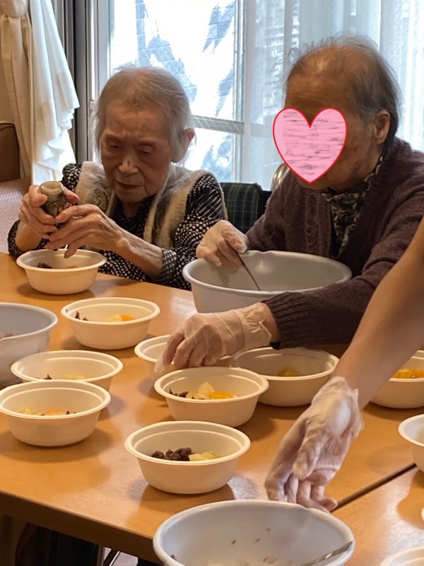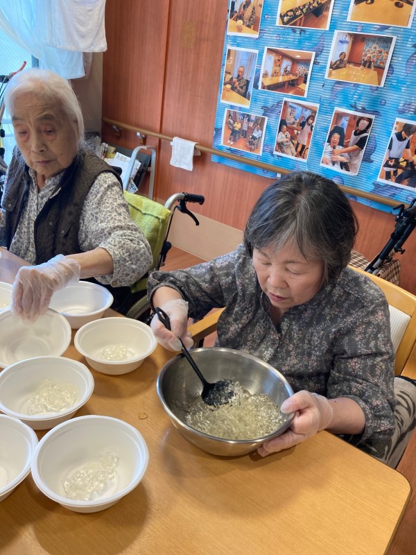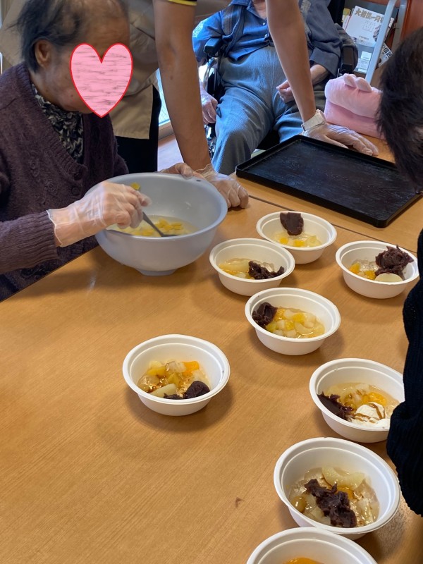 おやつを1.2階(女性陣)合同であんみつ作りを行いました~!!