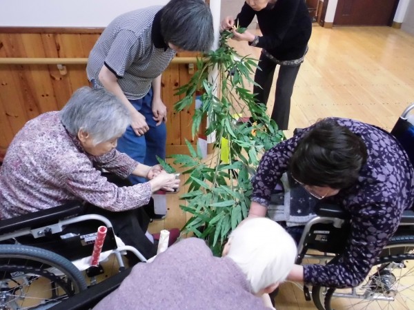 七夕にご入居者様にお集まり頂いて、笹に飾り付けをしました★