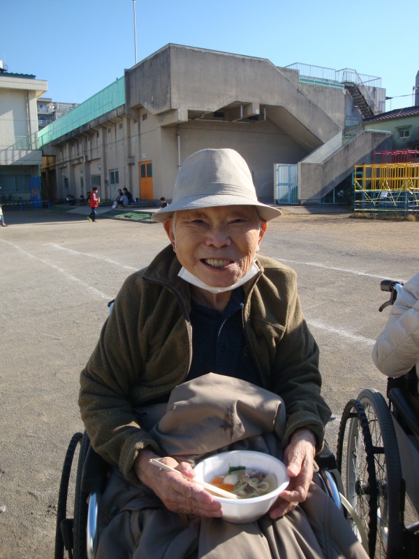 お散歩大好き!この日は、小学校の餅つき大会へみんなでお出かけ。