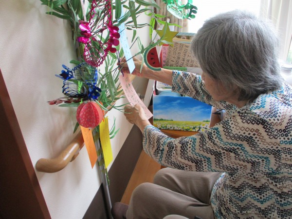 スイカ割りの裏側では皆で短冊に願い事を書いていました。