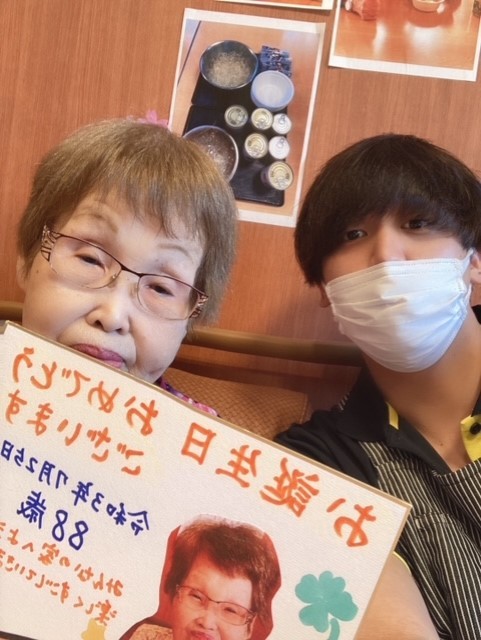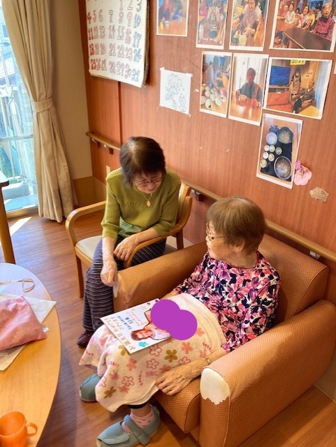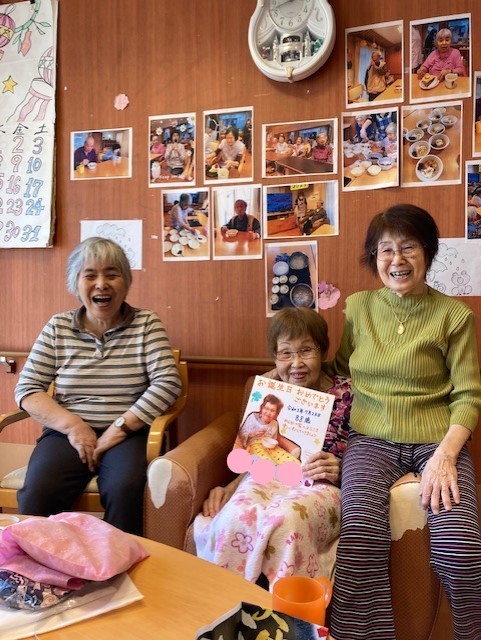 お誕生日を迎えられた入居者様を色紙とでハッピーバースデーの歌でお祝いしました♪