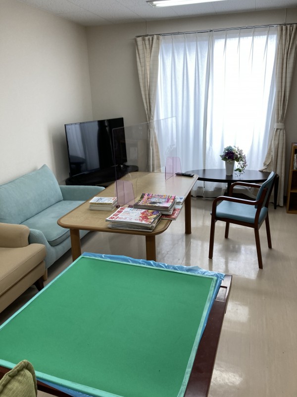 このレクリエーションルームはソファーがたくさん用意され、毎月定期的に購入している雑誌を誰でもお読み頂く事が出来ます。また雑誌の他にもTVやトランプ、以後、将棋、麻雀、いろんな本が用意されていて、どなたでもお楽しみ頂く事が出来ます。気の合う人同士で将棋をしたりソファーに座りながら雑誌を読む等、好きなようにお部屋をお使いいただく事が出来ます。