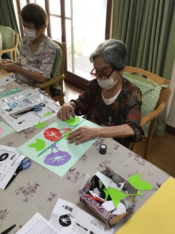 先週は朝顔の切り絵を利用した