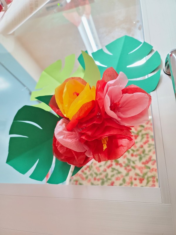 みんなの家墨田では、夏らしいハイビスカスの花を作りました✿