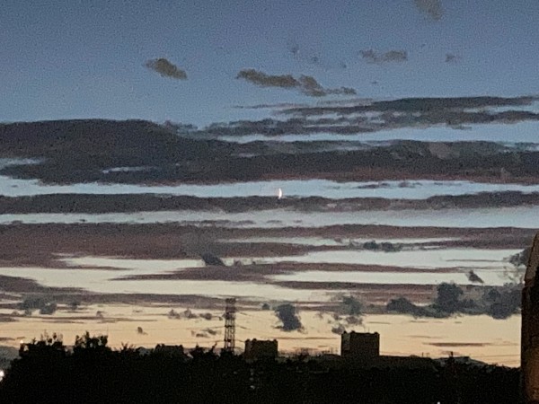 みなさん見えるでしょうか? 細目の月も雲とかくれんぼをしていました。