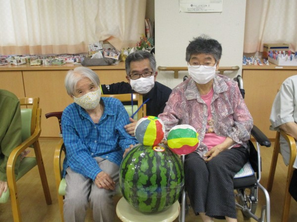 今日も賑やかにま、又思いっきり棒でスイカを叩きました!