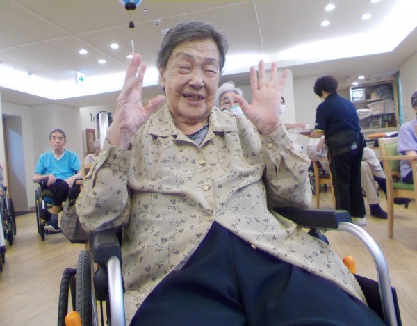 いつもの体操にも参加してくれているお客様。