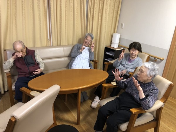 夕食後の口腔ケア後に、みなさん少しづつ自主的にフロアに集まってこられ、TVを観ながら、談笑が始まりました。