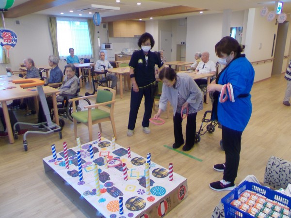 輪投げは、簡単にできそうな感じがしますが、棒に輪を入れるのって結構難しいですね・・・