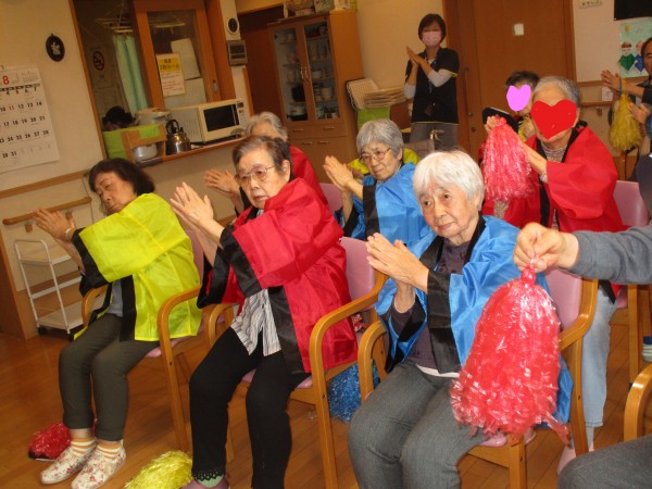 法被を着たり、うちわやポンポンを持ったりと準備万端です♪