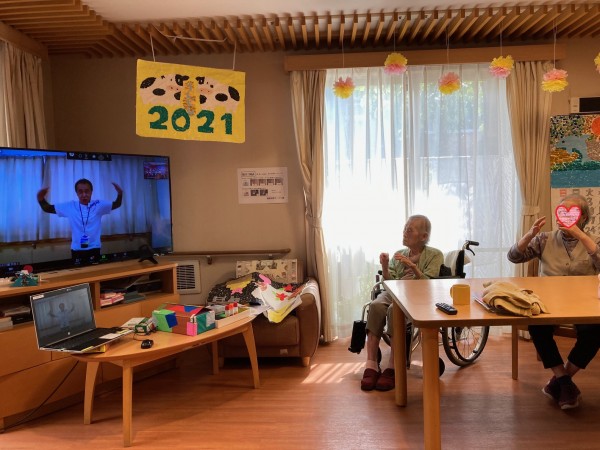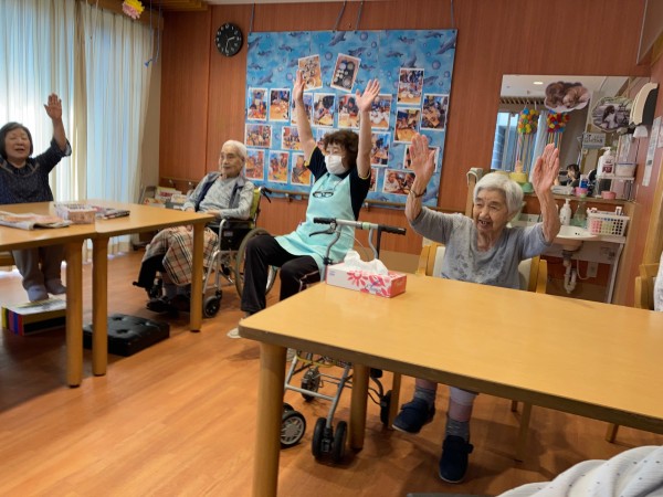 手を交互に上げたり、足を開いたり、膝を上げたり頑張ってました!