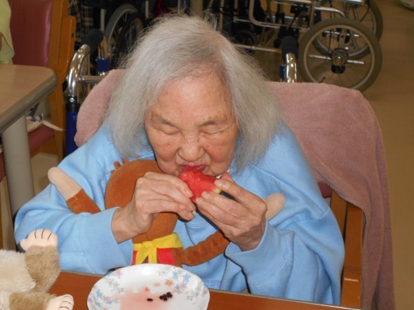 勿論、見事叩き割る事に成功したスイカは、利用者様のお腹の中に入る事になり、大変喜ばれておりました。