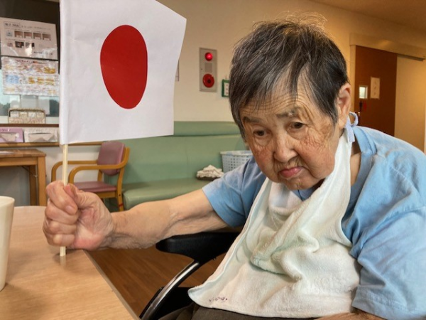 皆さんそれぞれが、日の丸の旗を振り一生懸命に応援!!!