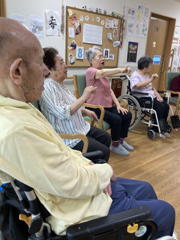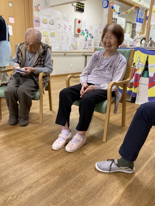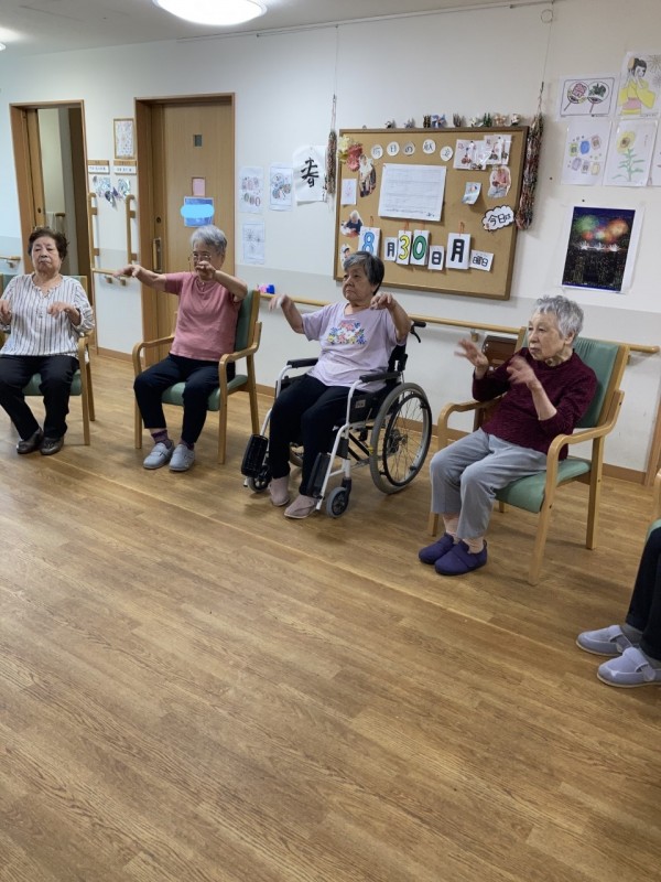 ご利用者のみなさんとともに、私たちスタッフも真剣に取り組みました!・・・というのも、結構この運動は難しいんです(笑)
