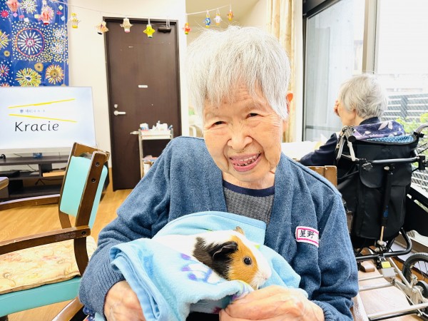 緊張していた空ちゃんも利用者様の腕の中で安心した様子(≧▽≦)