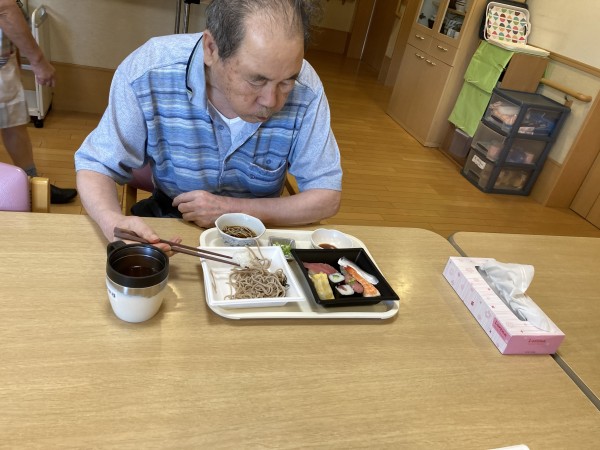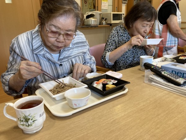 今日は出前のお寿司とお蕎麦のセットを準備しました!