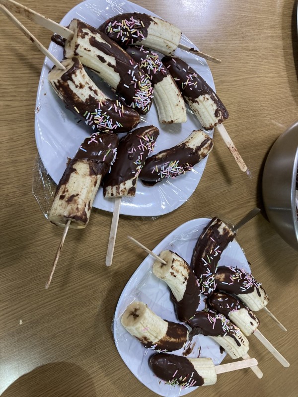 今日はチョコバナナ作りをしました~(^◇^)