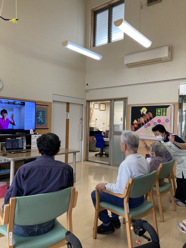 今回は岡庭指導員(↑左側のモニターに映ってますね)による、“いきいきリズム体操”に挑戦!