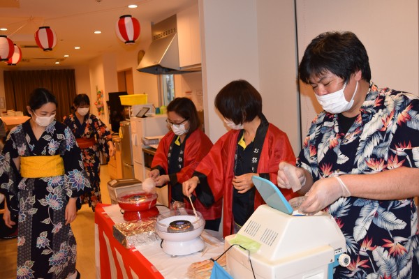 夕食後に出店を用意し、スタッフも浴衣に着替えて(一部女装も混じっていますが・・)