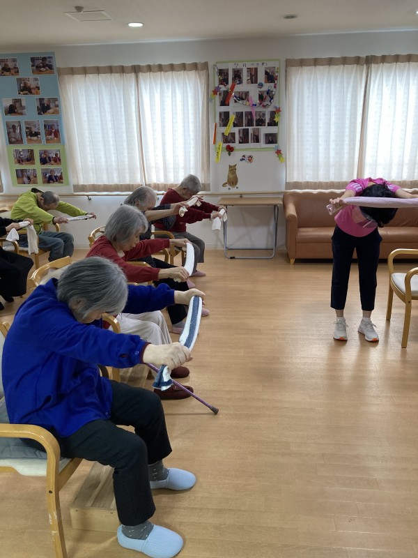 先日、運動指導員の岡庭先生とタオル体操を行いました!