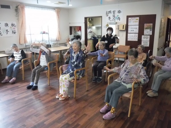いつものリズム体操とは一味違う体操でしたが、皆さんすぐに慣れて、楽しく体を動かしていました。