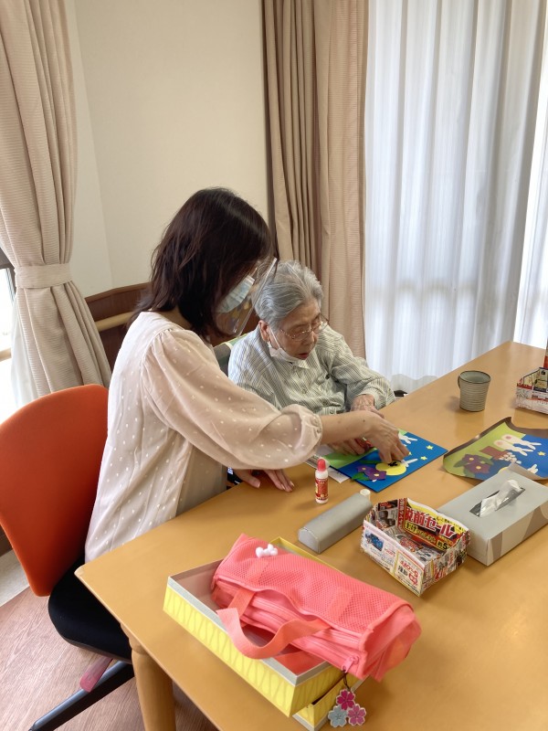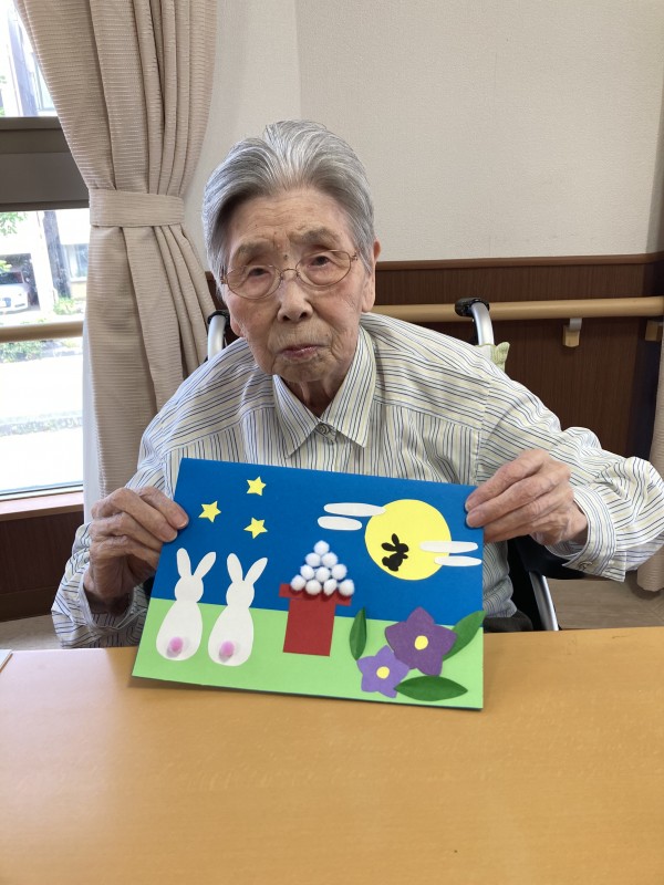 ご利用者様、お月見うさぎの張り絵