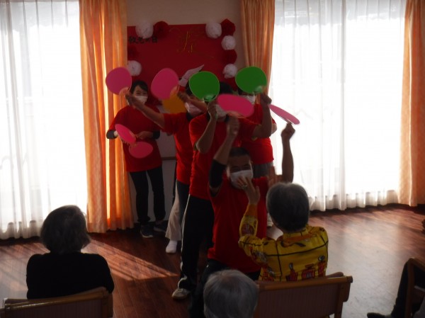 今回は金が谷の敬老会第2弾 【お楽しみ会編】です。ご長寿の表彰の後に、スタッフ全員によるダンス。
