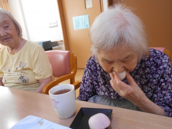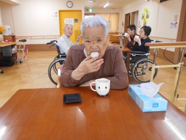 三時には、紅白まんじゅうを召し上がって頂きました