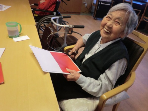 先日開催しました、秋の大運動会に使用する旗の作成をショートステイ利用者様がお手伝いしてくれました!
