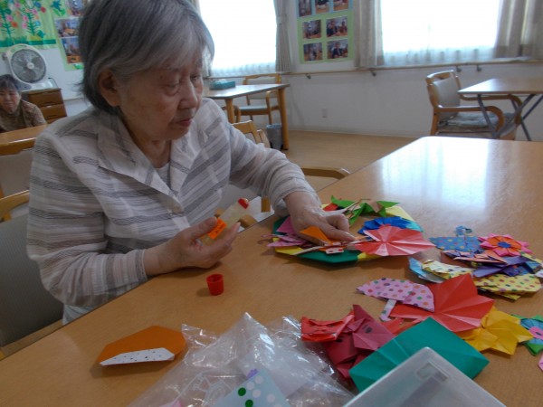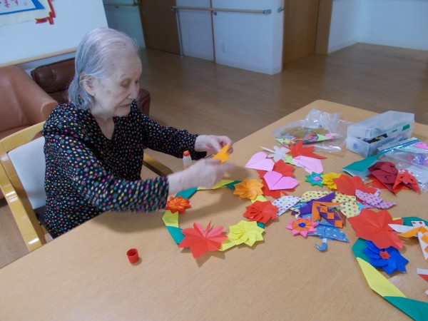 スタッフが作った切り絵や折り紙を選んでいただき、貼っていきます。