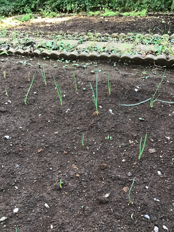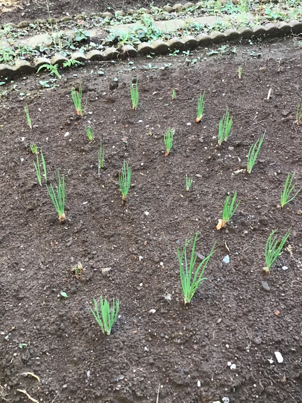 わけぎの伸びが早く驚いています、玉ねぎも頑張っています。